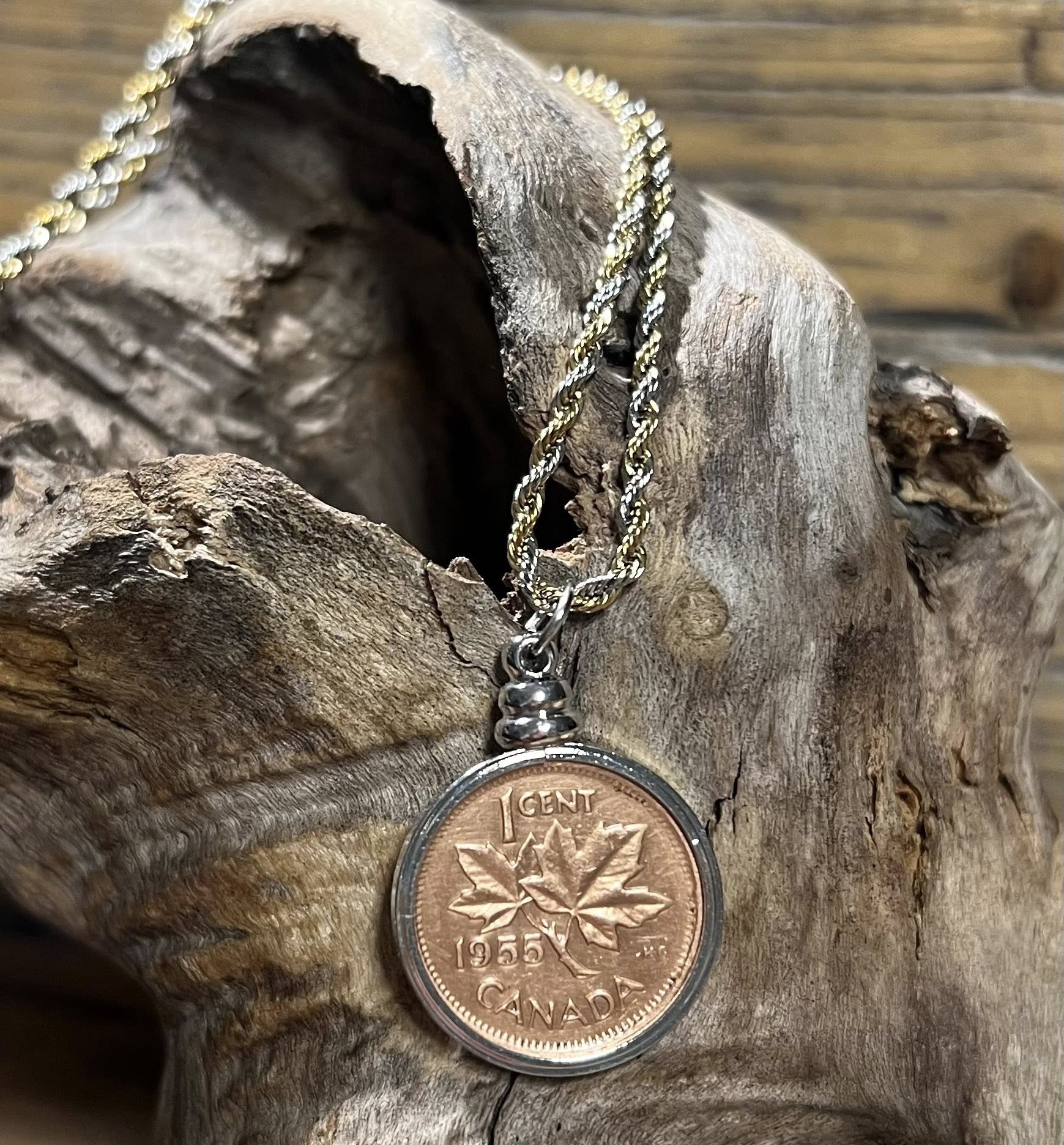 This pendant is made with a genuine Canadian penny, turned into a piece of jewelry full of history and charm. Each coin carries a story of Canadian heritage and everyday life.